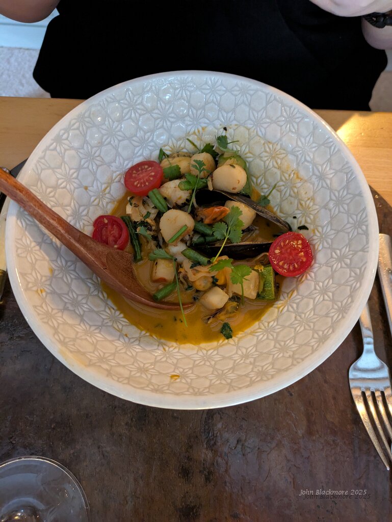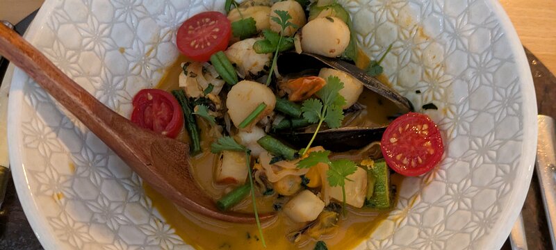 Thai coconut shellfish, pineapple and chilli