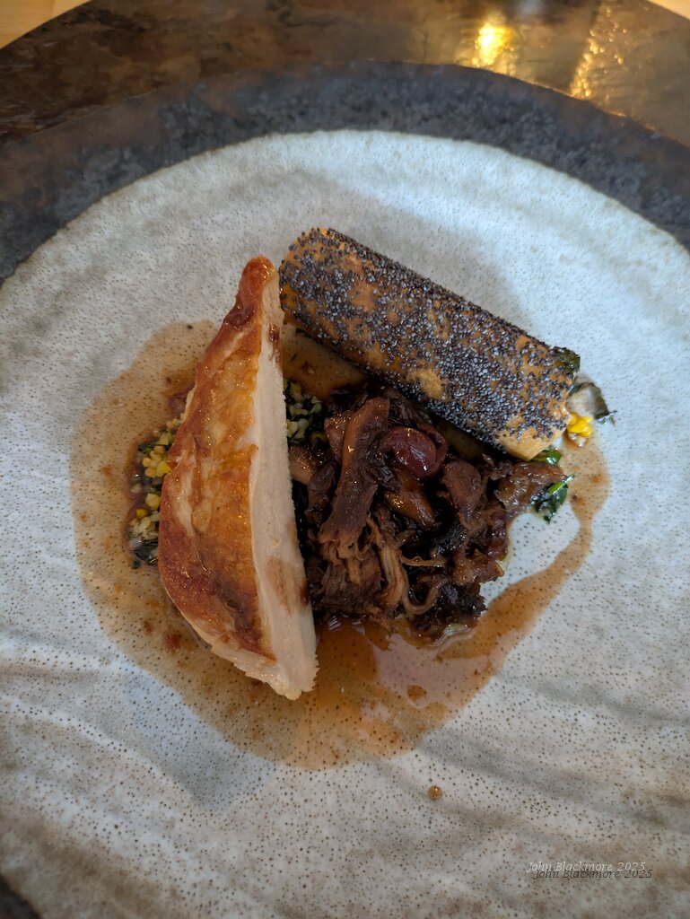 Za'atar guinea fowl breast, pomegranate and beetroot braised leg