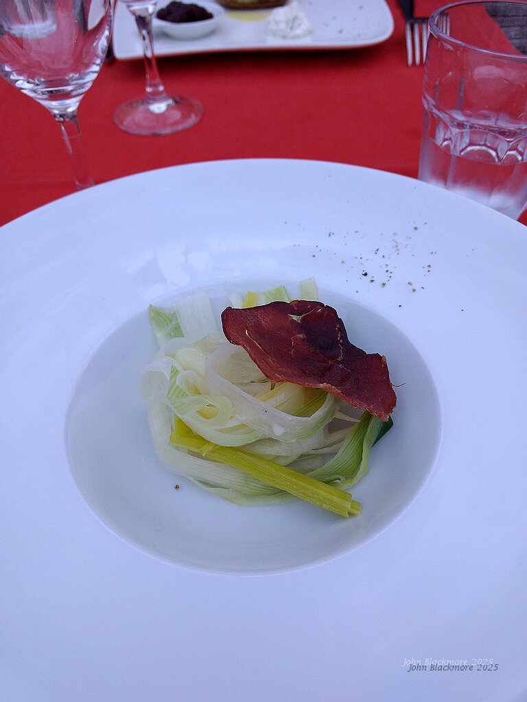 starter: Tagliatelles de Poireau à la Ricotta et Lard Fumé