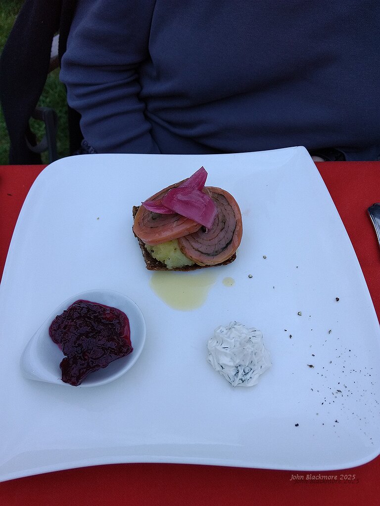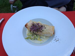 main: Strudel de Saumon Fumé et Lieu, Julienne de Chou Vert Crémée