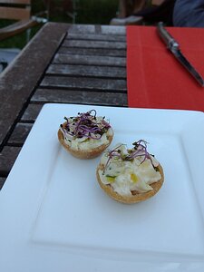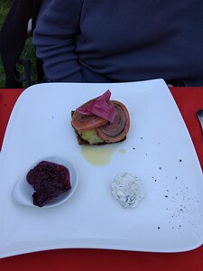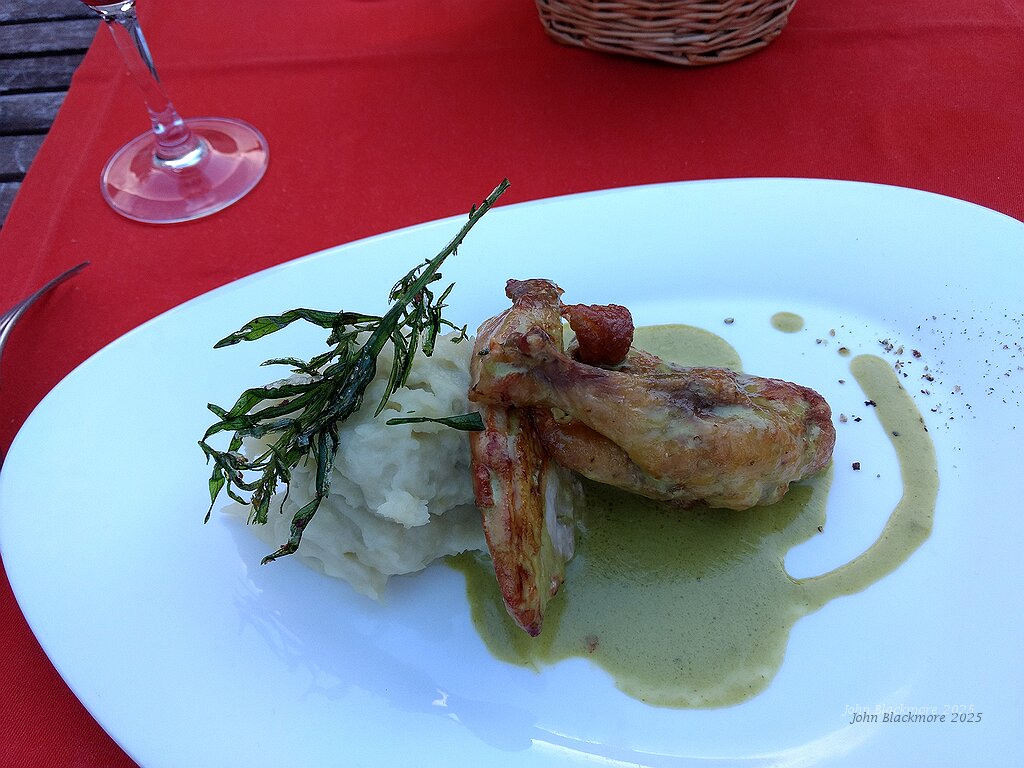 main: Suprême de pintade à l’estragon, Ecrasée de Pommes de Terre au Ste Maure