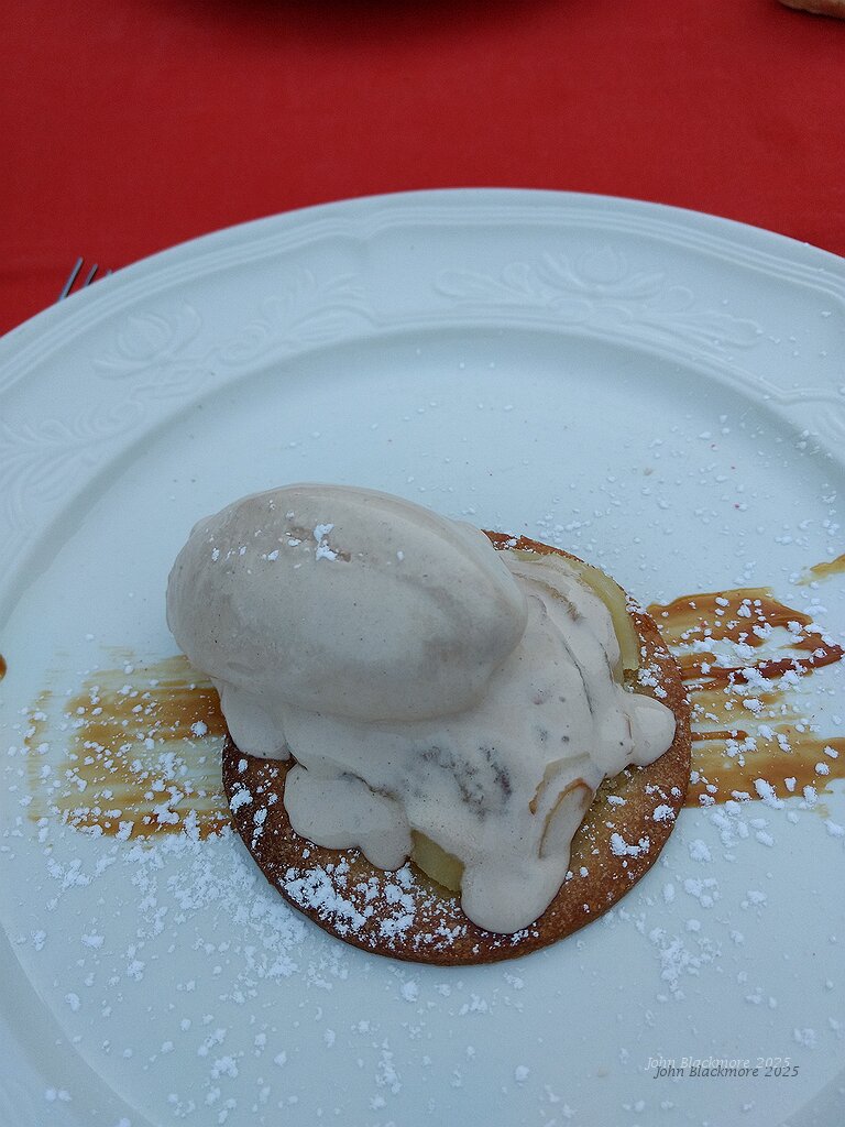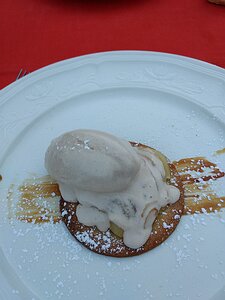 dessert: Tarte Fine Bourdaloue et sa Crème Glacée à la Noisette